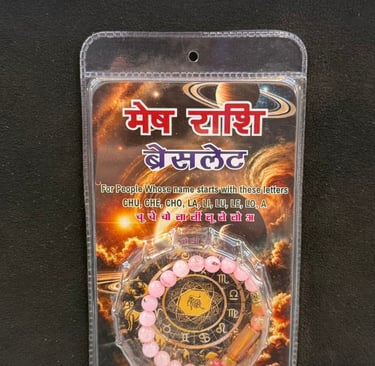 From powerful Rashi and Rudraksha bracelets to serene crystals, pyramids, and gemstones, every piece carries a sacred vibration designed to bring harmony, prosperity, and peace into your life.